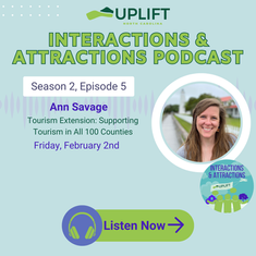 UPLIFT's podcast, Interactions & Attractions, features conversations with tourism industry experts, community leaders, and state partners! Join us as we ask them about the experiences and interactions that led them into their fields and learn about some of their favorite attractions their local regions have to offer!